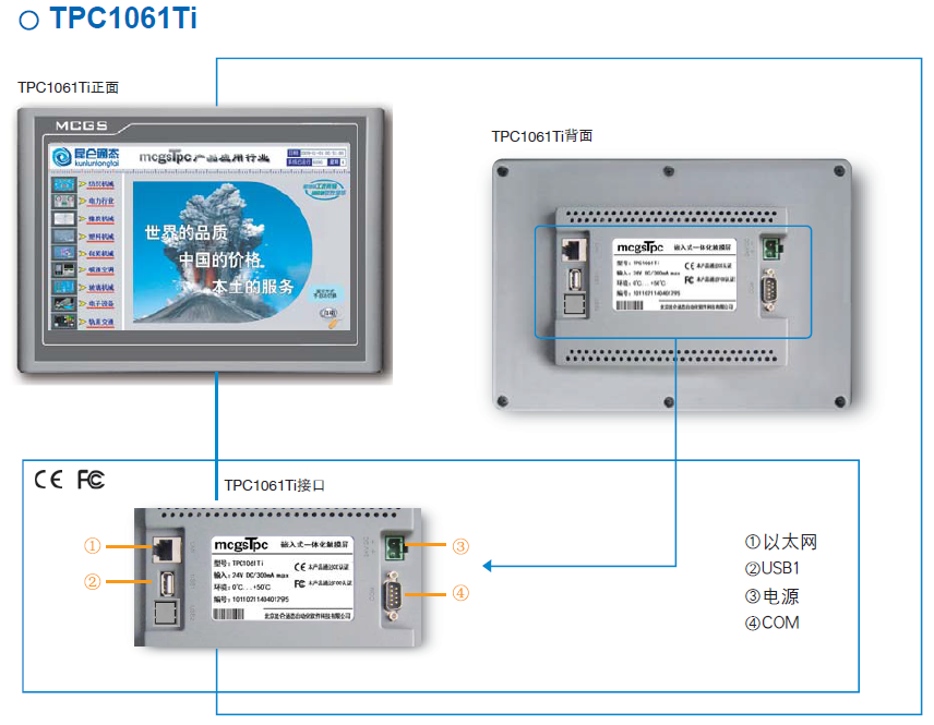 TPC1061Ti,是一套以先進的Cortex-A8 CPU為核心(主頻600MHz)的高性能嵌入式一體化觸摸屏。該產品設計采用了10.2英寸高亮度TFT液晶顯示屏(分辨率1024×600),四線電阻式觸摸屏(分辨率4096×4096)。同時還預裝了MCGS嵌入式組態軟件(運行版),具備強大的圖像顯示和數據處理功能。圖像顯示和數據處理功能。